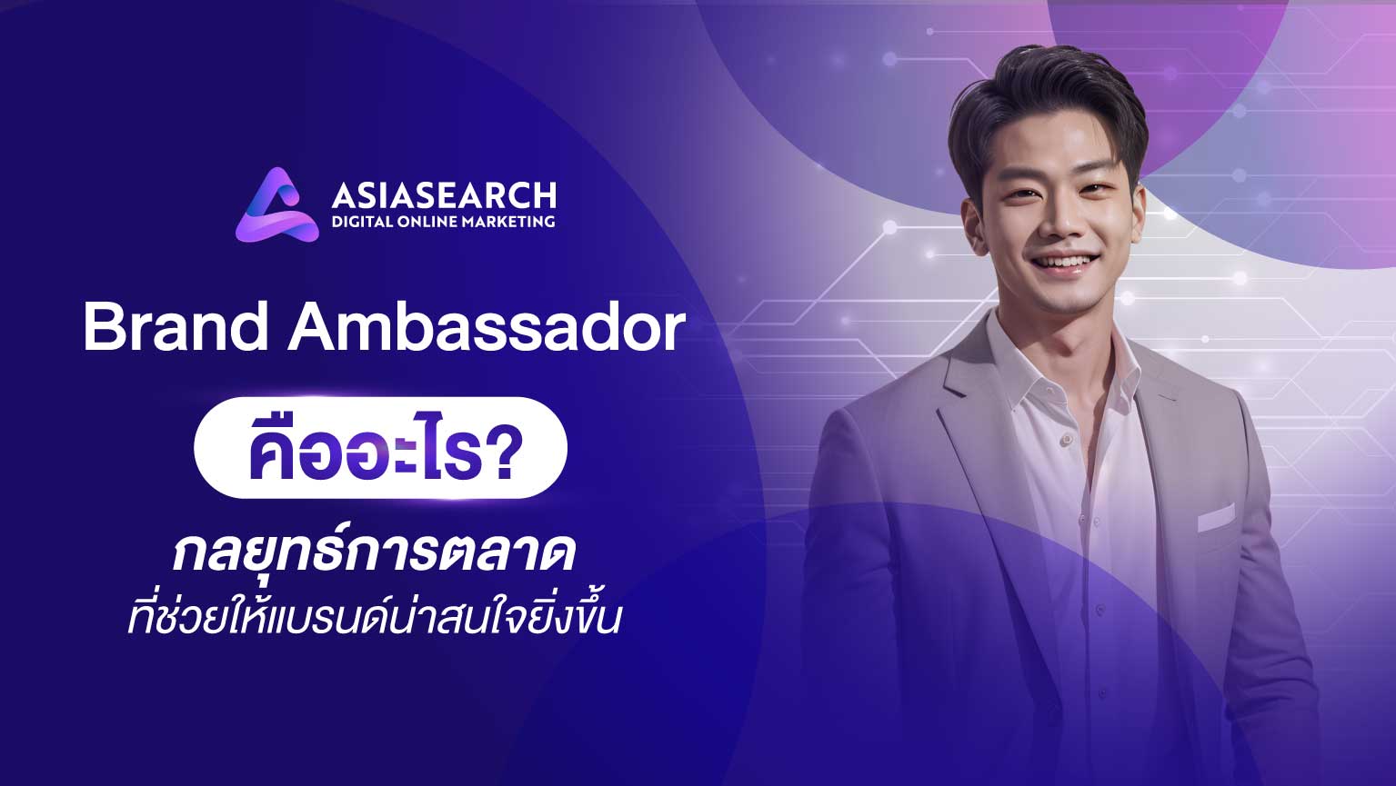 กลยุทธ์การใช้ Brand Ambassador ช่วยเพิ่มยอดขายให้ธุรกิจเติบโตได้ ด้วยการโปรโมตผ่านช่องทางออนไลน์ ทำให้ผู้ชมจำนวนมากสนใจหันมาใช้ตาม และยังเป็นการสร้างภาพลักษณ์ที่ดีให้กับแบรนด์อีกด้วย ปัจจุบัน Brand Ambassador มีหลายคน และมีจุดเด่นที่ต่างกัน หากคุณเป็นเจ้าของธุรกิจที่สนใจกลยุทธ์นี้ แต่ยังไม่แน่ใจว่าจะใช้กลุ่มไหนให้ได้ผลที่สุด อย่าพลาดโอกาสที่จะปรึกษาเรา บริษัท ดิจิทัลมาร์เก็ตติ้งเอเจนซี่ Asia Search Solution หนึ่งใน 5 เอเจนซี่ที่ดีที่สุดในประเทศ ให้บริการดูแลการตลาดออนไลน์ให้กับธุรกิจทุกประเภทด้วยประสบการณ์มากกว่า 10 ปี