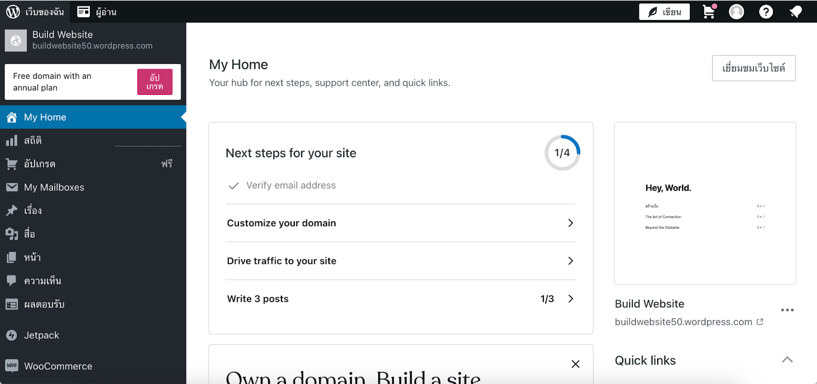 Domain: This is the unique address of your website, such as .com, .net, .org, .edu, .gov, .th, etc.