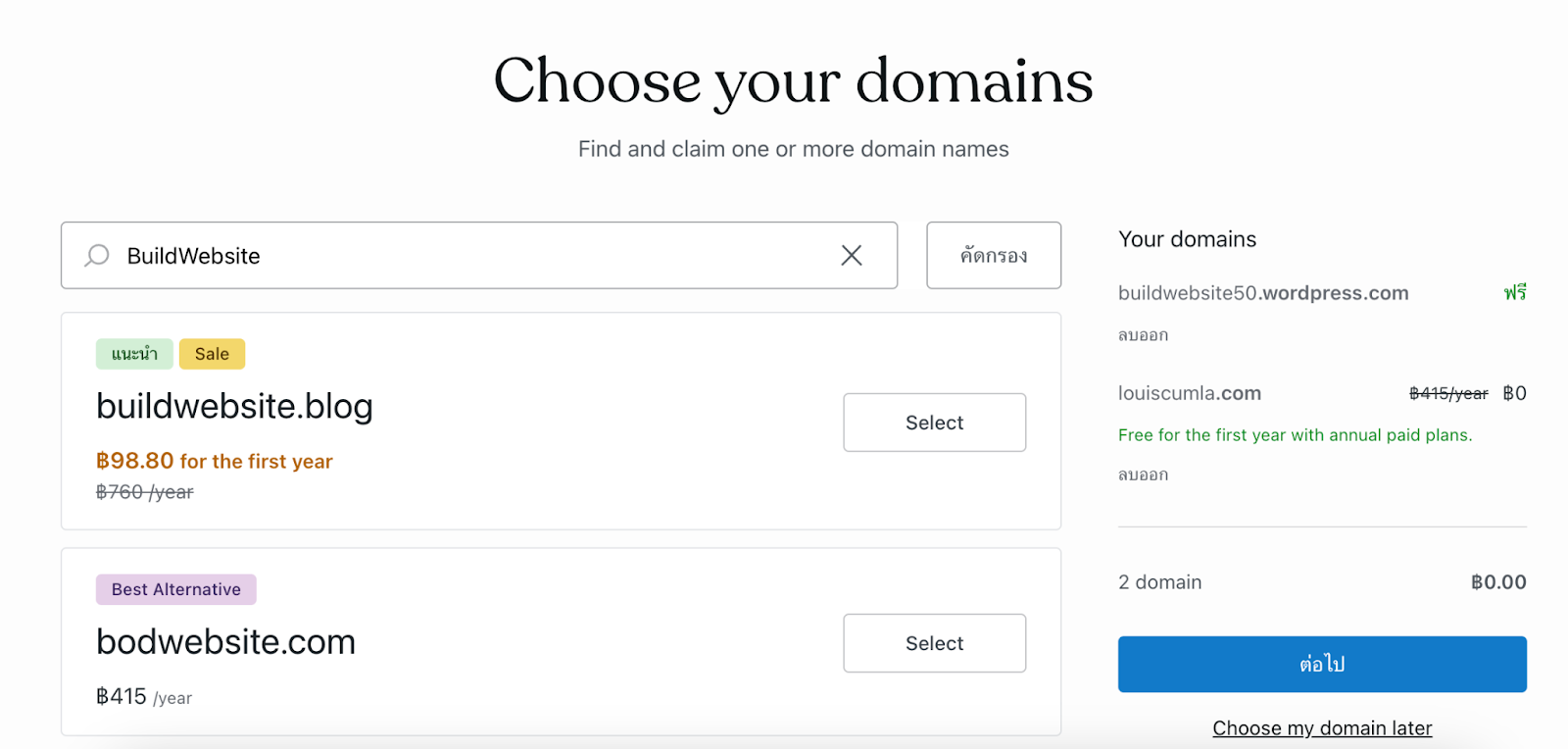 Choose a domain extension to complete your website address. Popular options include .com, .net, .org, .edu, .gov, .th, among others. These extensions, known as Top-Level Domains (TLDs), categorize the nature of your website. Some domains may incur additional costs, while others might be free or offered at no charge for the first year.